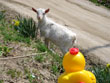 | 体調を崩し、下痢をしていたみのりは、朝晩の冷え込みを避けるためにビニールハウスの中で寝かせていた。1週間程で下痢もしなくなり食欲も旺盛になったので、そろそろ小屋へ戻そうと思っていた。そう考えていた日の朝、ビニールハウスの戸を開けるとみのりは足を投げ出して眠っていた。しかしいつもの体勢ではなく、様子が変だった。「みのり、みのり」と、何度声をかけても返事がなかった。口も目も開いているけど、何も喋りそうにないし、何も見てそうになかった。もう生きていないのが分かった。目の前にいるのはみのりなのに、ここにみのりはいない。こんな悲しいことは他にはない。 |