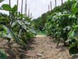 朝と晩に聞こえるヒグラシの声が日ごとに大きくなってきた。 天気も音も夏らしくなってきた村で、畑もまた夏らしい顔ぶれが揃い始めた。 |