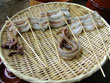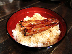 | 土用の主役とも言えるうなぎは、近くの川で獲ることになった。けれど、大雨に見舞われて茶色く濁る流れの速い川では、そう簡単なものではなかった。踏ん張りながら歩いて、見えない水面下を延々と探っていた。前の日に仕掛けた仕掛けは、あまりに川の表情が変化したせいで仕掛けた場所すら分からない。主役なしの土用はなんとしても避けたいと必死になって探していると、ようやく仕掛けにかかっていた一匹のうなぎを捕獲。結局釣れたのはその一匹だけだったけれど、充分な大きさの天然鰻が手に入った。 |