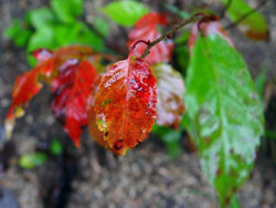 里山で、垂れて伸びる枝の先の葉を触っていた。すると、急にその葉が赤色に変化した。次の瞬間に、その枝の葉は全て赤くなり、次にその木の葉が全て赤くなり、そしてすぐに辺りの木々が真っ赤に染まった。僕が触れた葉を中心に、数秒で村の木々が全て赤く色づいた。里山を風が走るように、赤色が木々を染めながら里山を走ったようだった。 |