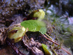 今週は、フキノトウが地上に顔を出した。 丸い小さな二つのフキノトウは、村長のいる水飲み場のすぐ下に現れた。その場所も小ささも丸さも水しぶきの浴び方も例年と同じ。いつもと同じように春を連れてこの村にやってきた。 |