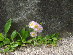 村の中を歩くと、今一番元気よくたくさん咲いているのがハルジオンだということが良く分かる。 6月の陽射しの下、どこでも雑草の中から自由気ままに顔を出す。けれど、ハルジオンという花は実に個性豊かな植物で、どこに咲いているハルジオンもそれぞれの表情を持って咲こうとする。 |