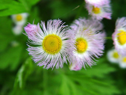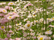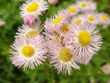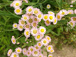 | まずハルジオンの個性を感じる部分は、花びらの色にある。純白からピンクまで、それぞれがその間の色をしている。白色の絵の具にどれだけ少しずつピンクを足したとしてもこんな色にはなりそうもないくらい、微妙な色のものばかり。中には、花びらの先端はピンクっぽく内側が白っぽいというグラデーションのかかった花もある。ほぼ紫色に近いようなピンク色のものもある。ハルジオンの色だけでも何通りあるのか数えることは無理だ。 |