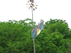 | ただの綿を旗にすることは、そんなみなさんの持つ知恵と技に触れていくこと。ひとつひとつは糸のように細い知恵と力に思えても、何本も何本もそれを積み重ね、絡ませ、合わせ、それらを織り成すことでひとつの「旗」のように大きなものとなる。今見上げる旗は、「ここはDASH村!」といった旗本来の意味の他に、数々の知恵や技やその他の力が集結した一枚の布としてもっと素晴らしい意味を持っているようにも思う。 |