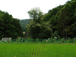 | 一方、実らせなければならない畑では、他の作物より毎年一足早いキュウリが今年もまた収穫間近まで大きく生長した。茎の根元の方で実るキュウリを見ると、食べなくてもそれだけで嬉しくなってしまう。いつも食べている野菜が生き物だということ、それが元気だということ、それが分かるだけで本当に嬉しい。そしてこのことは、DASH村ではないどんな場所でも、どんな時でも感じていたいこと。スーパーで買っても、調理されて目の前に出されても、この今のキュウリみたいに空の下、地面と繋がっていた時のこと思い、今の気持ちを大切にしていたい。 |