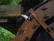 | この雨が降ってからはなかなか思うようにいかない様子ではあるけれど、何とか雨に負けず、立派な蛾となってもらいたい。新しい姿で新しい世界へ旅立って欲しい。そして、たとえ人に好まれなくても、ただひたすら自分の進むべき道を知り、そこへ向かって努力する姿を僕も見習いたい。 |