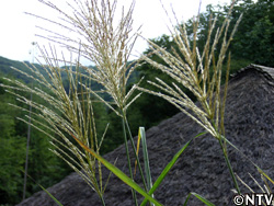 夕方になると時折涼しい風が吹くようになり、ススキが風に揺れているのを見ると、夏も終わりに近づいてきた気がする。役場前の栗の木もたくさんの実をならせ、地面には秋を待ちきれない緑の栗もいくつかあった。そんな栗と同じ気持ちなのか、秋のトンボ「赤トンボ」も日中の暑い中飛びはじめた。どうやら秋は着々と近づいているみたい。 |