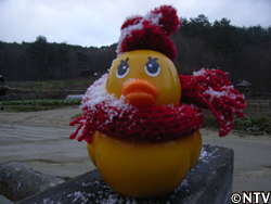 | そのうち北登が急に体を動かし始めた。何かと思い後ろを振り向いて見ると、白いゴマみたいなものが私の頬についた。それは、ほんのり冷たくて、手で触れると溶けてしまうような柔らかいもの。 その正体は「雪」。今年の「初雪」。今年は暖冬と言われていただけに雪が降るのはまだまだ先と思っていた。しかし、村に天気予報は通用しないのか、予想よりも早く雪が降り始めたのだ。 毎年同じ「雪」だけれど、なんだかすごく嬉しかった。大人になっても嬉しかった。 そして楽しい気分になった。冷たいけれどなんだか暖かく、白い雲の中にいる不思議な気分。 |