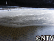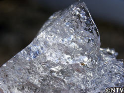 太陽に照らされる氷。 調整池の水は凍り、人が乗れるくらいの厚さになった。 白く、時には透明に輝く氷は言葉を失うほどの美しさがある。 また、透明な氷に映し出された冬空がキラキラ光りとても綺麗だった。それは今まで見たことのない空だった。 |