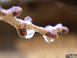 桜のつぼみに滴るきれいな雫。 それはキラキラ光る「雨の雫」。 濡れたつぼみは一段と鮮やかになり、美しく見える。 |