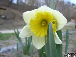 | 春の兆しと言えば、今週、ラッパ水仙が1つ咲いた。待ちに待った水仙。ラッパからは音楽ではなくほのかに甘い香りが流れてきた。私はそんな春の香りに誘われ、思わず「春だな」と口に出してしまった。ふと下を見ると、北登は私の言葉など全く聞いていない様子で、一生懸命「タンポポ」の匂いをかいでいた。北登は「水仙」よりも「タンポポ」のほうが好きみたい。そんなタンポポは、毎日見るたびに数が増え、綺麗な黄色の花を咲かせ、どんどん村に彩を加えていく。 |