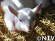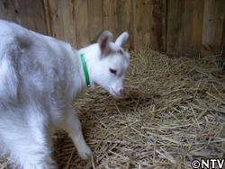 | すくすくと生長をしているのは仔山羊達も同じ。「さくら子」と「うめ吉」と・・・・ 本当はここに「もも子」もいるはずだった。 ある朝のことだった。いつものように餌をあげに小屋に近づくと、1匹だけぐったりとしている仔山羊がいた。急いで小屋の中に入ると、「もも子」が力なく横たわっていた。 昨日まで元気だった「もも子」が死ぬはずがない、ただ眠っているだけなのだと信じたかった。でも、どれだけ呼んでも鳴き声はしない。マサヨも悲しげな顔で「もも子」を見つめている。なんとか助けたいと思っても、もう私には何もしてあげることができない。悲しみよりもその悔しさばかりにかられる。せめて言葉が分かれば、そんなことも考えた。しかし「もも子」は安らかな顔で眠っている。なんだか複雑な気分だった。 |