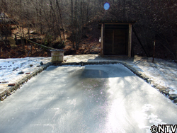 | まず、毎朝−5℃の中早起きをし、氷の表面をほうきで掃く。雪が降ったら氷に不純物が混ざってしまうので解ける前に雪かきをする。手が割れてしまうような寒さの中、「綺麗な透明な氷ができますように」と心を込めて氷を磨く。その時、ふと氷というのは「つくる」のではなく「育てる」ものだと思った。作物と一緒で毎日水をやったり、草をむしるのと同じ。毎日ゴミを取り、氷を磨き、丁寧に育てていく。寝ている間も氷のことを考えている。そんな毎日の積み重ねが、透明で溶けにくい氷をつくっていくのだと思った。 |