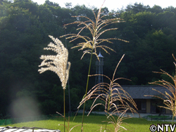 風に秋の気配が漂いはじめ、ヒグラシの声も遠くなってきた。 そして耳をすませば、色々な秋の足音が感じられる。 ススキは背丈も高くなり、気持ちよさそうに風に揺れている。やはりススキを見ると、秋だなという感じがする。 |