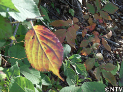 ひんやりと柔らかい秋風が村を包み、ススキが気持ちよさそうに揺れている。 そんな風に誘われて里山の枯れ葉も舞い始め、赤や黄色のじゅうたんがあぜ道に敷き始められた。 私は夏色のあぜ道も好きだけれど、秋色のあぜ道も好き。赤や黄色の枯れ葉が彩る美しさは心を癒してくれる。まさに芸術の秋という感じがする。ふだん食欲の秋しか考えていない私でも、惹かれるものがある。 |