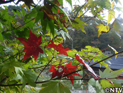 里山の紅葉も気の早いものは赤色から褐色が増えはじめ、すっかり秋も見ごろの風情。 つい最近まで鮮やかな赤色や黄色だと思っていたのに、茶色がかってきた。 |
