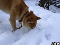 | そんな私をよそに、北登は空気ではなく雪に喜んでいる。今年は雪が多くて、明らかに北登のしっぽのふりがいつもより大きい。 なぜ、犬はこんなに雪が好きなのだろうか。 そんな北登はよく雪の中に顔を突っ込んでいる。何かおいしい匂いがするのだろうか?それとも雪に味があるのだろうか?人でいうカキ氷みたいなものだろうか?でもカキ氷は夏食べるからこそおいしいのであって、冬はどうかという気もする。 |