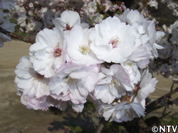 | 今年、そんな桜はボタンのような綺麗な花を咲かせてくれた。青空の下で、ふんわりと咲く白い桜は、格別な美しさだった。
