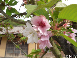 | しかし、そんな緑あふれる里桜も年々樹勢が弱まり、今年も無事花を咲かせてくれるか心配するほどに弱っていた。 そこで、村のシンボルでもある里桜を絶やさないために、2年前から後継樹づくりに挑戦してきた。 1年目は里山に自生しているヤマザクラを「台木」、村の里桜を「穂木」にして、「接ぎ木」という方法で後継樹づくりに挑んだ。しかし台木との相性が悪かったのか、失敗に終わってしまった。 |