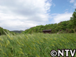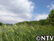 緑・波打つ麦畑。 初夏を思わせる爽やかな風が吹くたびに、出穂を迎えたばかりの大麦の穂が「ざわー・ざわー」と音をたてて揺れる。 麦茶にもパンにもなる素敵な大麦の海。 寄せては返すその海の波は、時折太陽の光で銀色に輝いて見える。 本物の海の波にはない、ゆったりとした輝きはまるで踊っているかのよう。 それを見ていたら私の心も躍り出し、なんだか楽しくなってきた。 |