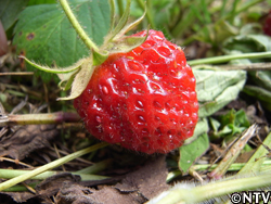 「おいしいね」と思わず北登に声をかけてしまったその食べ物は「いちご」。 役場裏・ミツバチ巣箱前に開墾した自称『あんべ畑』で、つい最近まで緑色だった「いちご」が、あっという間に赤く染まり食べ頃を迎えていた。 |