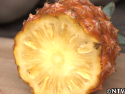 | 果肉の色は、完熟した黄金色で程よい酸味と濃厚な甘さで、こんなおいしいパイナップルは初めて食べた。 食感もシャキではなく、柔らかいリンゴを食べているような食感で、何個でも食べられるような気がした。 まだ5個あるパイナップル、あと5回も食べることができると思うと、今からわくわくする。 |