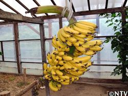 | 定植したばかりの昨年5月、梅雨の悪天候もあり上手く根付かずバナナが枯れ始めたのが最初。その後の大きな危機は冬の温度管理。温度を上げるための暖房システムを作り、寝る間も惜しんでハウス内を暖めた。 葉につくダニ「ハダニ」により、葉が枯れ始めるという危機もあった。エゴマ油のしぼりかすを肥料として与えたこともあった。 その他、通常の作物の何倍も手をかけてきたバナナづくり。 |