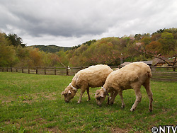 | その場でヒツジの放牧と毛刈りを見せて頂いた。ロスさんは牧羊犬を使いあっという間にずっと遠くにいたヒツジを集め、巧みにコントロールしていた。僕は、そのすごさに感動した。それもそのはず、ロスさんは一匹を50秒で刈り、一日621匹ものヒツジの毛刈りをしたことがある達人だった。ロスさんのお兄さんもギネスの記録を12年間保持していた記録を持つほど。 そんな毛刈りの達人に来村してもらい、テンとシロの毛刈りを指導してもらうことになった。あの丸々としたテンとシロがどんな姿になるのか、想像してみてもその姿を見るまではうまく想像出来ず、わくわくが止まらなかった。 |