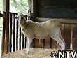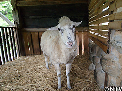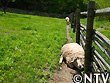 | ヒツジ姉妹の後ろ姿はヤギの後ろ姿にそっくり。走り方もヤギにそっくりだし、やっぱりヤギに近いのかなと思いながら後を追いかけて、いざ牧草地に着き、毛の無くなった顔を正面からじっと見てみると・・・ウシ? |