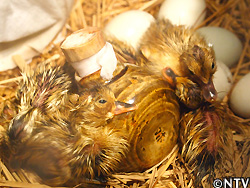 | しかし、実際にやってみると、本当に繊細で難しい。親鴨は餌も食べず、やつれながらも卵を孵す。この代わりをやるのだからそれはもちろん簡単ではないはずだ。しかし親代わりになるという事は、命に関わる事なので孵さなければいけない。責任は重大だった。 |