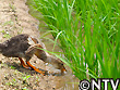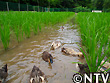 | 遅れて10羽目のカモヒナも無事に孵ると、それからは限度がないのではないかと思うほどの食欲ですくすくと育っていった。しかし、今年は天候不順で田植えが遅れたので、例年よりも少し遅めの田んぼデビューになった。デビューした瞬間から、視界に入った虫たちを全力疾走で追いかけて行くのを見て、また自然と笑顔になった。ふぶきに続き2度目の命の誕生と成長を見守り、村に来て大事な思い出がまた一つ増えました。 |