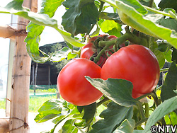| 牧草地では、ヒツジとヤギ一家が日光を浴びながら草を食み続けている。毛刈りから3ヶ月経ったヒツジ姉妹の毛は生え揃い、毛の断熱効果からかヤギ一家が日陰にいる中、日なたで元気にしている。 作物たちも、売りに出す為に一気に収穫したけれど、この日光を浴びまだまだ熟れていて、ナスやトマトは色好くてかっているものも増えている。 |