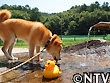 | 北登も初めは勢いよく飛び出すけれど、最後の方には息が上がり水飲み場に直行し、一緒になっておいしそうに水を飲む。水飲み場の水は湧き水でひんやりとしているので火照った体にちょうどいい。そのまま顔を洗うと汗も引く。 |