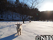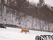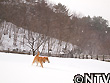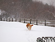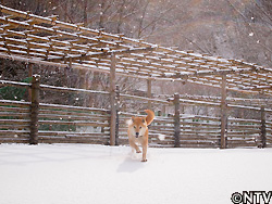 | 縮こまりながら歩いていると視線を感じたので見てみると、こんな寒さ厳しい環境の中で何にも変わった様子なくキョトンと見つめてくる北登がいた。北登の瞳に映るのは、着膨れするほど厚着をしている僕・・・。思えば、北登が寒そうにしている様子を見た覚えがない。むしろ、雪が大好きだ。 雪やこんこ 霰やこんこ。 降つても降っても まだ降りやまぬ。 犬は喜び 庭駈けまはり、 猫は火燵で丸くなる。 この歌詞で有名な童謡「雪」。その中の歌詞にある通り、村のわんぱく坊主「北登」もまだ厚く残る雪の上を元気いっぱいに走り回る。むしろ、雪が降るといつも以上にテンションが上がり、雪の中に鼻を突っ込んだまま歩き回ったり、新雪をわざと選んで歩き感触を楽しむ。さらに、牧草地に放すと喜んで跳び回る。はしゃぐ北登を見て、「寒くないのかなあ」といつも不思議に思ってしまう。 |