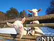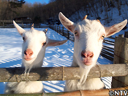 | そして、寒さが厳しく雪が舞う日に生まれたふぶきも満1歳になった。極寒の中、弱々しくも生き抜いたふぶきもこの寒さを諸ともせずに元気まんまん。 雪も融け始めた日、小屋の外に出し、久しぶりに母親であるリンダと一緒に放牧した。生後3ヶ月以降、別の小屋に入れていたが、すぐにリンダの後をずっと付いて回っていた。一緒の小屋に入れている時もふぶきはリンダの後を付いて回っていたけれど、一年経っても変わらないなあ。 |