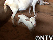 | 特に、ふぶきは産まれた時から知っているので、思い入れも強かった。 ふぶきが生まれたのは、2010年の2月中頃。強い北風に雪が舞う極寒の朝だった。なりたての新米村人だった僕の初仕事が、ふぶき誕生のサポート。 生まれたてのふぶきは弱々しく、立つのにも、泣き叫ぶのにも時間がかかった。もう、このまま弱って死んでしまうんじゃないかとあたふたしながら、体が冷えないように藁を足したり、体をタオルで温めたりととにかく出来る事をやった。 |