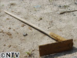 適度な量の土をいかに地面に水平に差し込むかがポイントなんだとか。 |