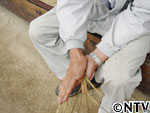 藁を数本束ね、手のひらの凹凸と摩擦を利用してねじる事でできる。