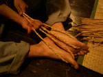 編みこんでいく。このとき、縄をトウモロコシの皮で包みながら編む