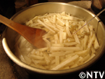 2.千切りした甜菜を70℃の湯に入れる。 |