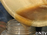 | 6.液がドロドロした状態(糖度80度以上)になったら火から降ろし冷ます。 これが「ビートシロップ(糖蜜)」と呼ばれるもの。 |