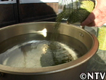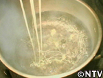 | 3.冷やす 澱粉が糊化しないように、冷たい水(10〜20℃)で30〜60秒、その後5秒ほど上澄み液に浸ける。 |