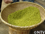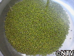 | 1. 収穫した緑豆を約半日お湯につける。 |
