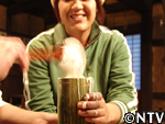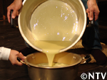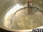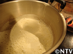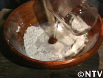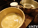 2. 生地をお湯に流し入れる。 |