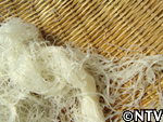 | 4. 麺のほぐし 冷凍した春雨を水に浸けて麺をほぐす。 5. 天日乾燥 広げて麺同士が離れるように乾燥させる。 |