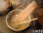 3.熱湯で10〜30分 2.の木材を煮沸する。 ゆで時間が少ないとうまく曲がらないのでしっかりゆでることが重要。