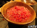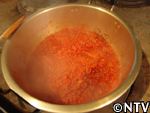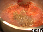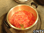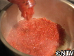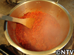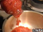 | 3. トマトピューレ(トマト14個分)を鍋にかけ、ぐつぐつなる程度まで煮る。 |
