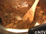 2. 玉ねぎをきつね色になるまでよく炒める。 |