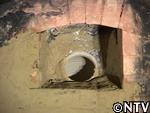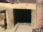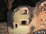 | 2.ガラス窯づくり コップづくりで使用したガラス窯では、口が小さく、直径20cmの窓ガラスを作るには難しいということもあり、今回は登り窯を使用した。 ガラスを熱する口は前回よりも広くとり、その上に沢山の砂を溶かせるように大きいルツボを設置した。 |