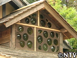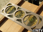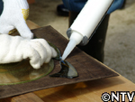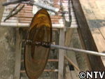 5.設置 24枚のガラスを持ち、さっそく穴空き状態の工房へ。 本来なら鉛の部材で固定をするフラウン窓だが、今回は、村ならではの木型でガラス固定をすることに。ガラス用のコーキングで接着し、2つの型で挟み込む。ネジ釘でしっかり固定し、側面の建具、明かり窓に設置する。 明かり窓からはしっかり陽射しが入り込み、明るい工房が完成した。これからはこの明るい工房で色々なものが作れそう。 |